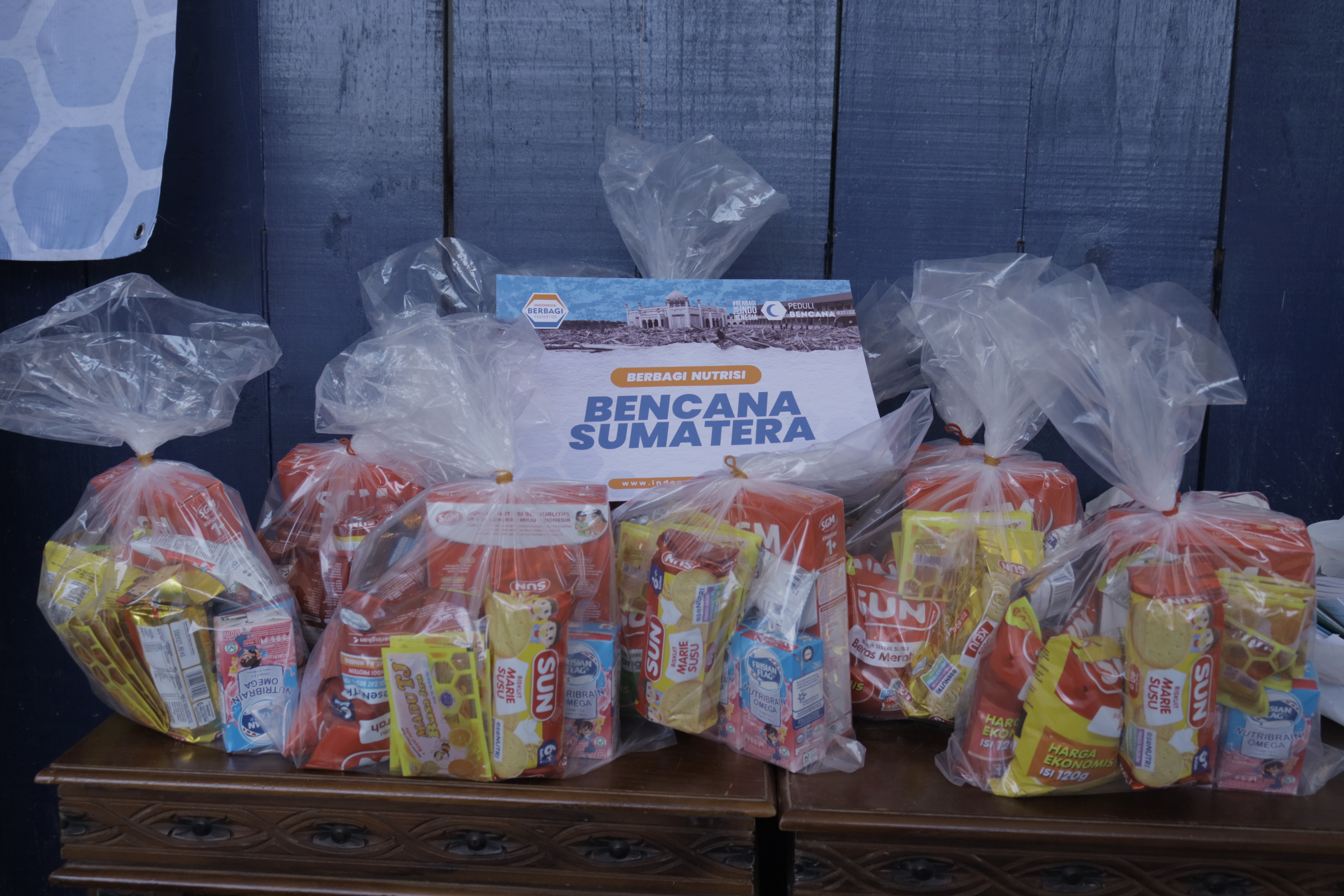 Paket Berbagi Nutrisi menjadi program pilihan yang disalurkan kepada anak-anak terdampak. Paket tersebut berisikan susu formula, susu UHT, bubur bayi, madu, dan biskuit khusus untuk balita, diharapkan bingkisan tersebut bisa memenuhi kebutuhan pangan mereka untuk beberapa waktu.