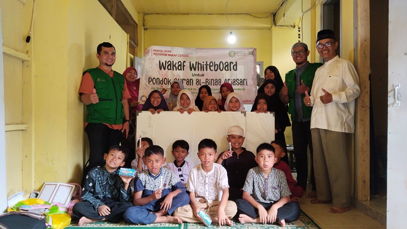 KABUPATEN BANDUNG – Wakaf Muslim Indonesia (WMI) menyalurkan program Wakaf Whiteboard kepada Pondok Qur’an Al-Binaa yang berlokasi di Kampung Sukarasa RT 004 RW 014, Desa Arjasari, Kecamatan Arjasari, Kabupaten Bandung, Provinsi Jawa Barat, pada Jumat (21/11).