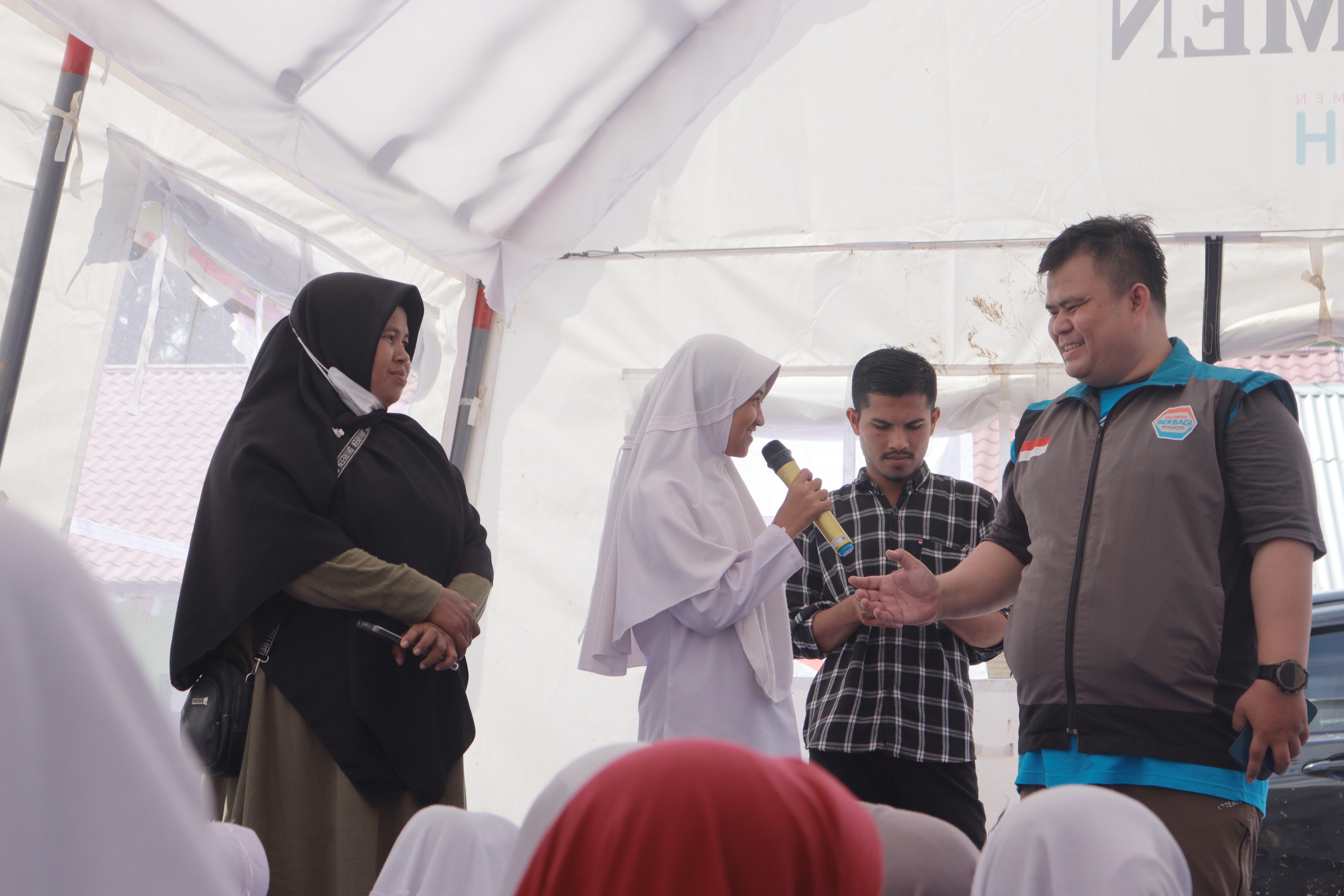Dalam kesempatan tersebut, tim Indonesia Berbagi juga memberikan apresiasi kepada salah satu murid berprestasi, Cut Ratu. Saat ini, Cut Ratu telah menghafal delapan juz Al-Qur’an dan memiliki tekad kuat untuk melanjutkan hafalannya hingga 30 juz. Meski terdampak bencana, semangatnya dalam menghafal Al-Qur’an tetap terjaga.