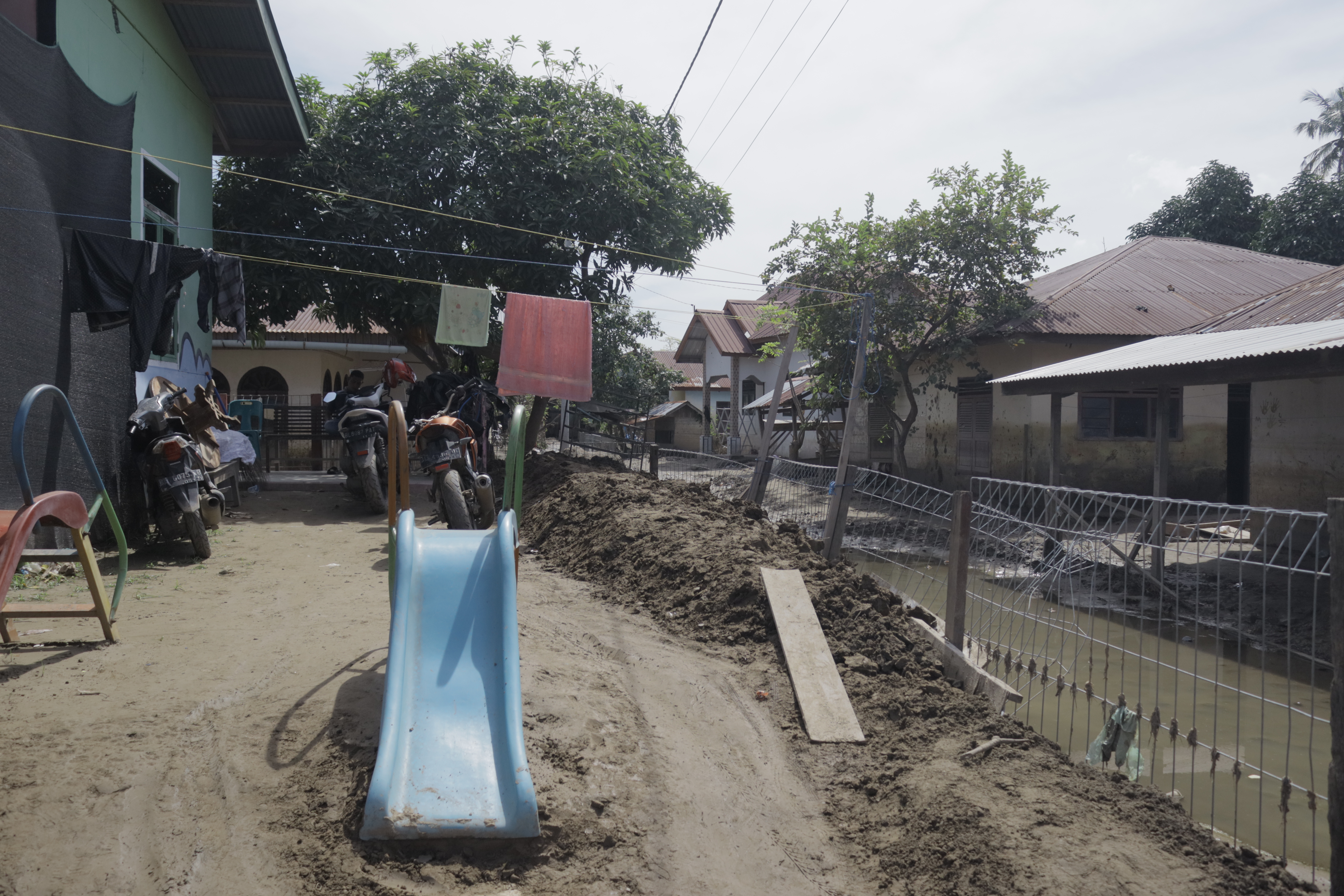 Di tengah genangan air dan tanah yang masih tersisa, anak-anak tetap menunjukkan semangat belajar dan keceriaan mereka. Krisis yang melanda tidak memadamkan senyum dan harapan.